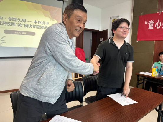 高校的有关老师、大学生志愿者和参加人工智能暑期培训学习的小学高年级学生,共同见证了签约共建仪式。